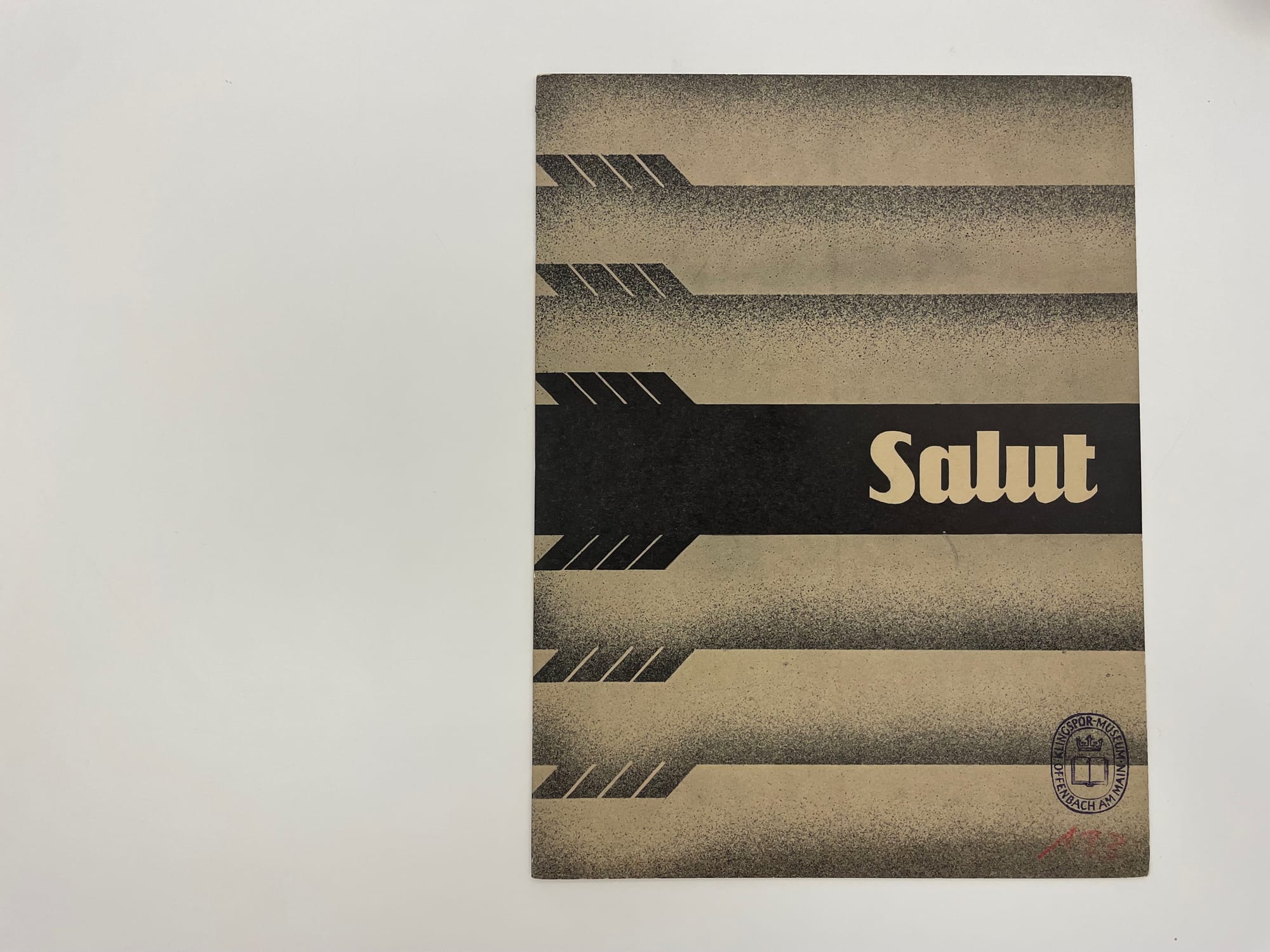 Salut by Heinrich Maehler. From left to right: 1. The closed specimen booklet 2. First page of the booklet.