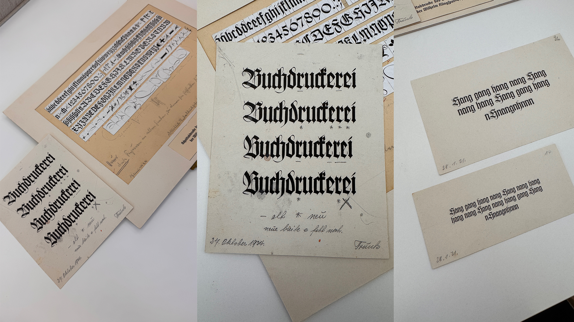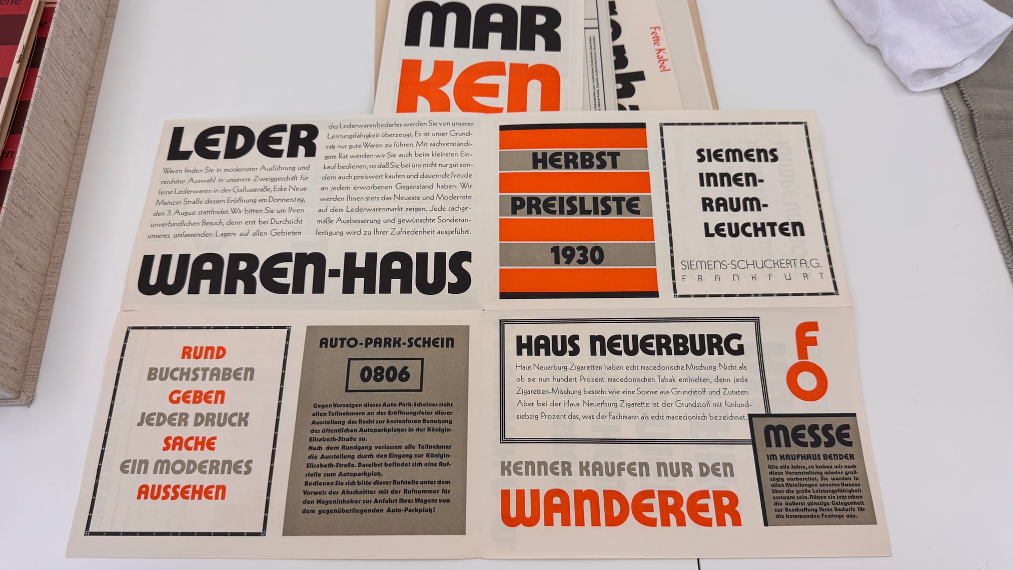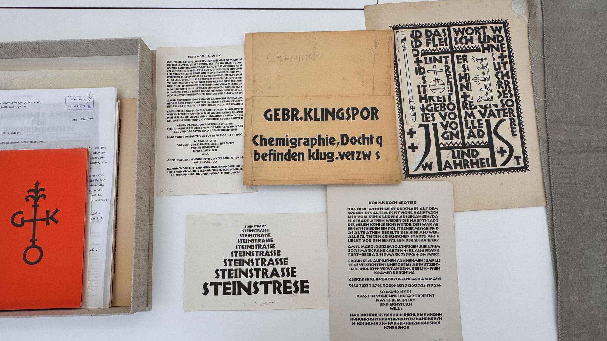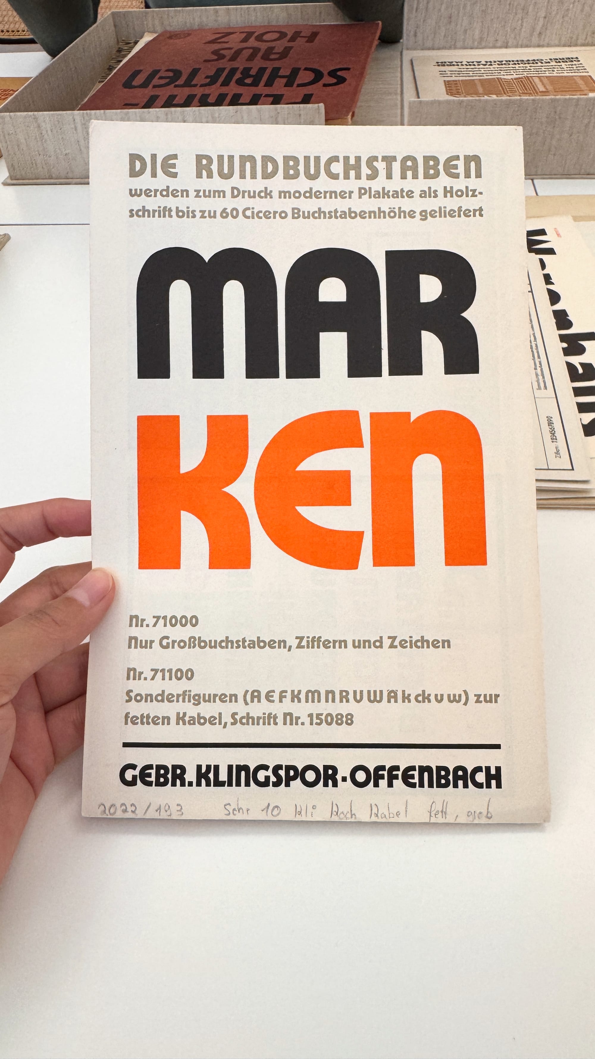 Designing type specimens or showcasing how a typeface could be used has always been a challenge for me. It’s usually the final step of the design process, and by then, all my energy has already gone into creating the typeface itself. As a result, I often struggle to create compelling specimens and lack the motivation to improve—until I discovered a collection of specimens at the Klingspor Museum. These specimens are presented as separate sheets of paper, organized in folders. Each sheet demonstrates different applications, such as cover letters, advertisements, and branding labels. Exploring multiple folders of these typeface specimens was both inspiring and enjoyable.