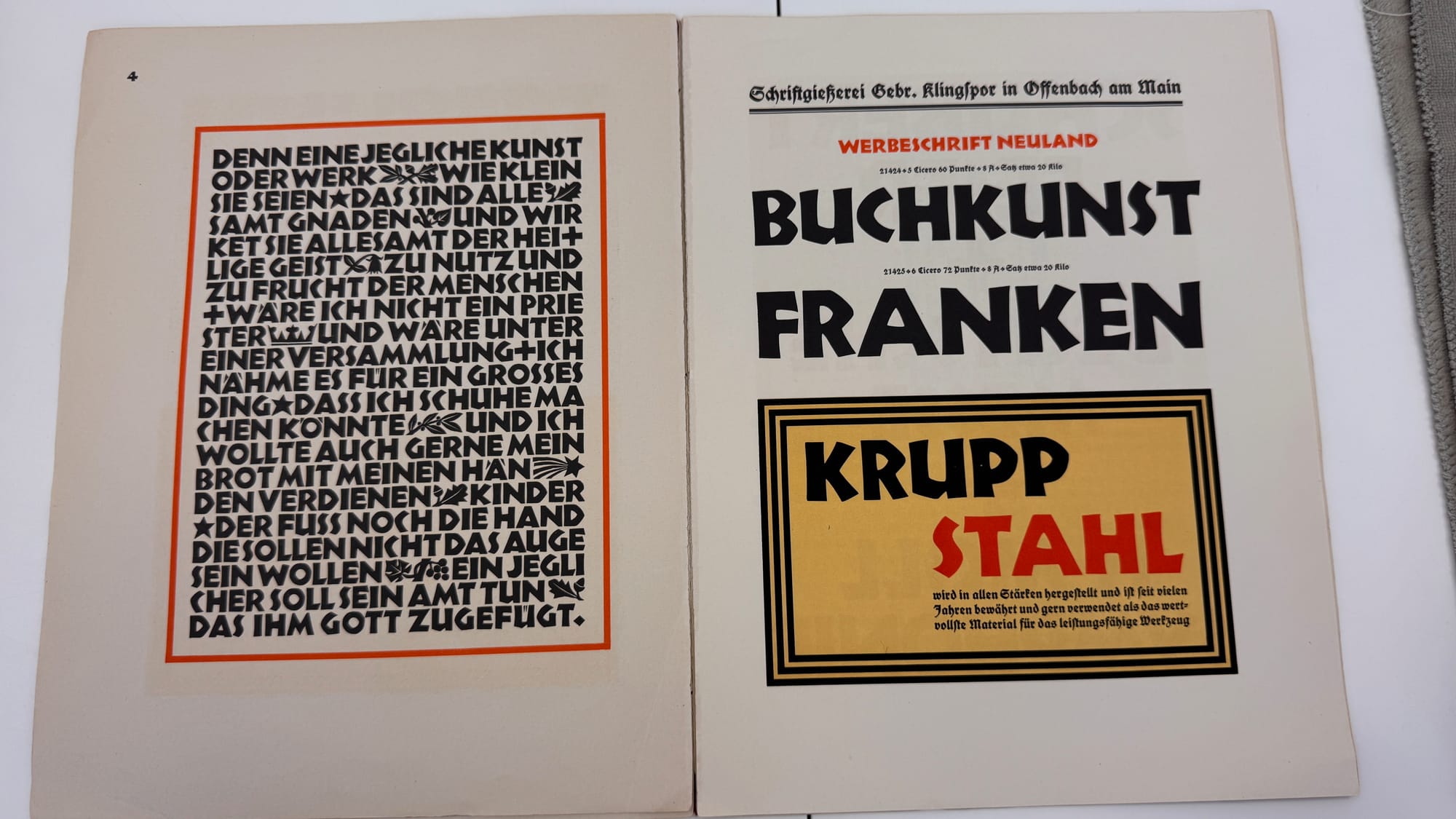 There was a moment I was wondering – “Who is Gebr. Klingspor?” — I found out that Gebr. Klingspor is not a person; it refers to a type foundry. The name “Gebr. Klingspor” is short for Gebrüder Klingspor, which means “Klingspor Brothers” in German. It was a prominent type foundry in Offenbach am Main, Germany, founded by Karl and Wilhelm Klingspor.