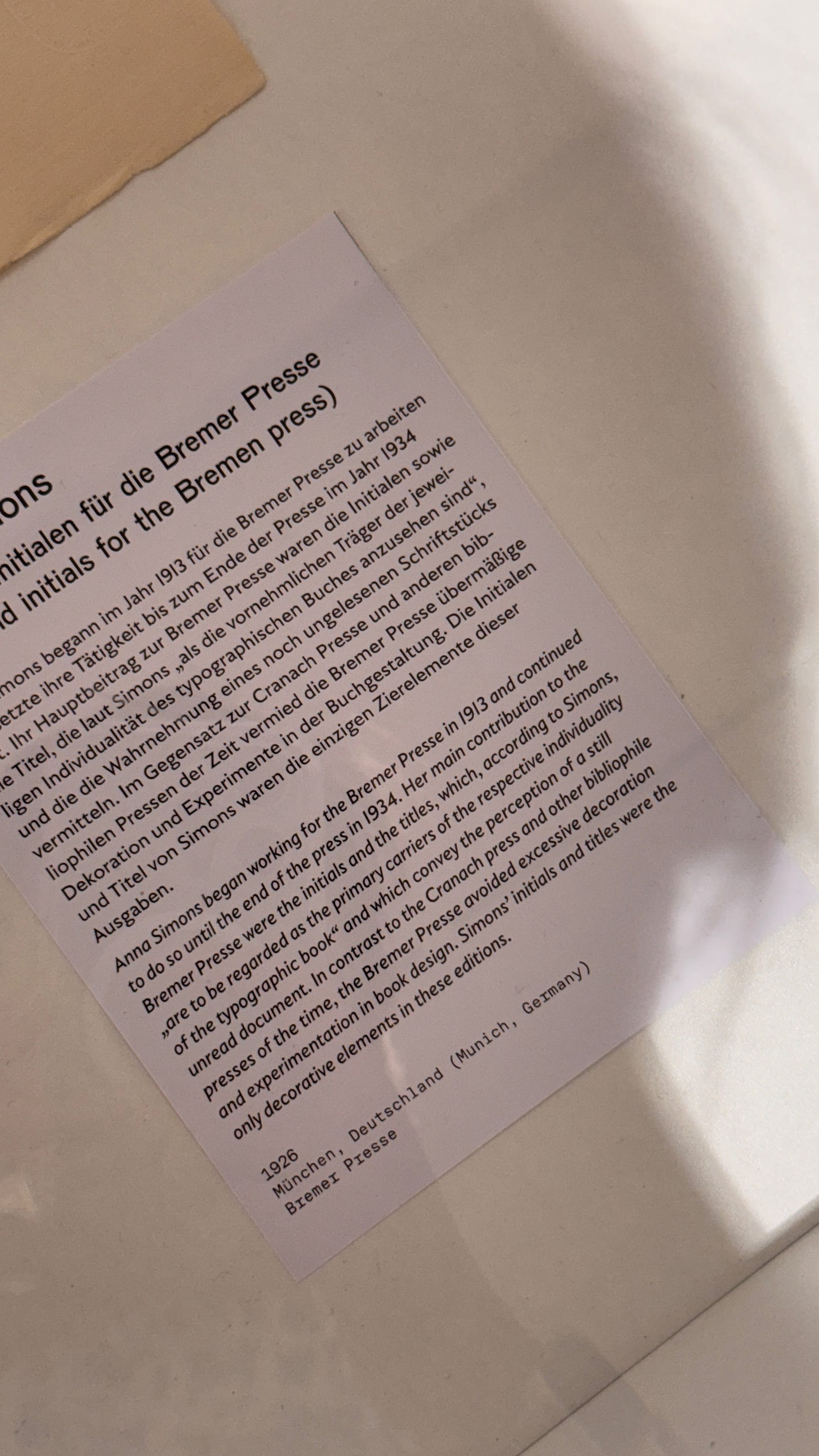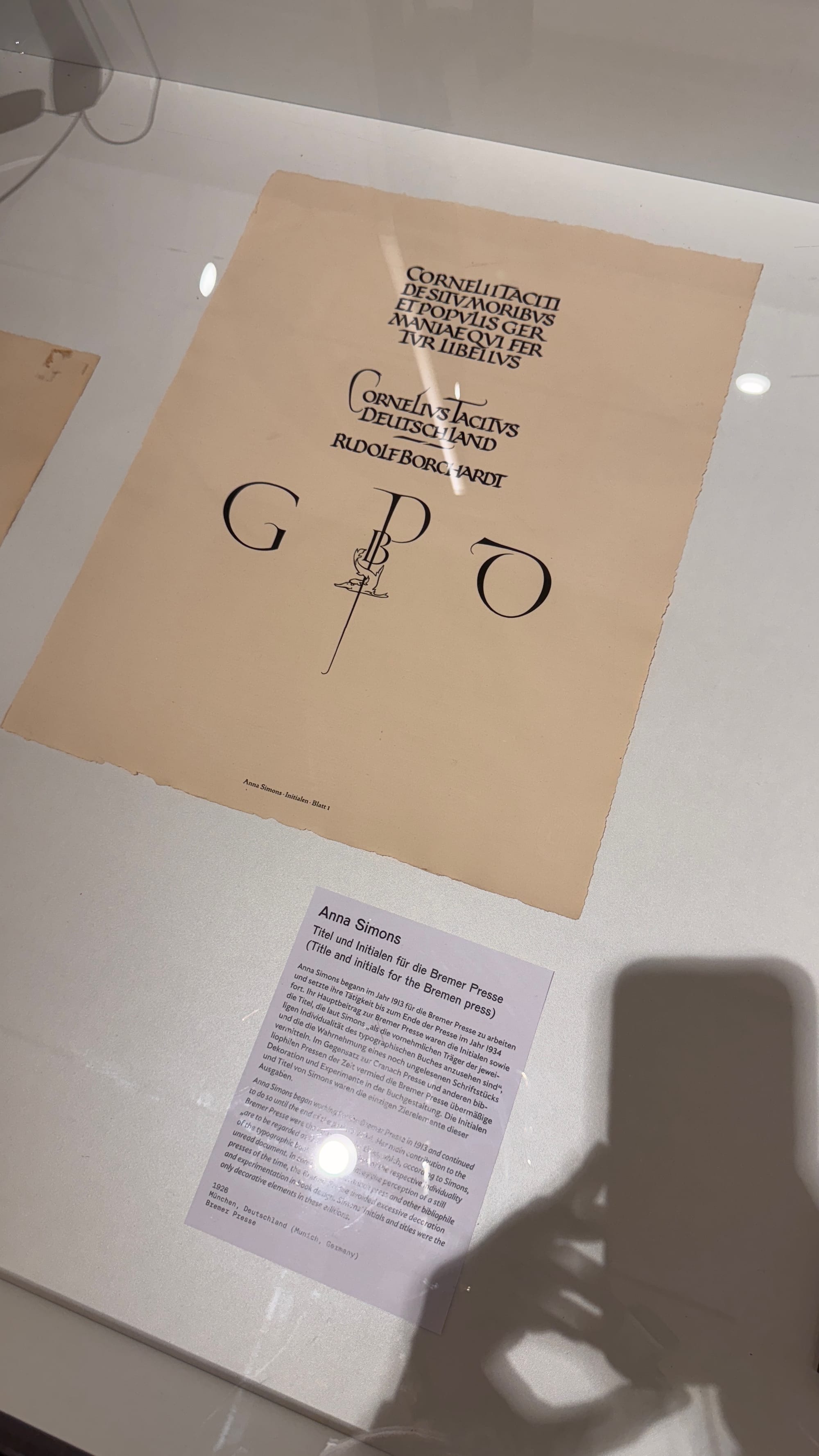 We had very little time to visit the exhibition (in the last hour before the museum closed), so I don't have a lot of good photos in this section. However, I was wandering there long enough to notice some artworks from female type designers of the past on display. And here are my favorite ones by Anna Simons. I cannot find a lot of information about her, but I found this book: Modern Pioneers in Typography and Design: Anna Simons, Edward Johnston, Rudolf von Larisch, F. H. Ehmcke. If anyone has additional leads, please feel free to comment or email me—I’d greatly appreciate it! 😊